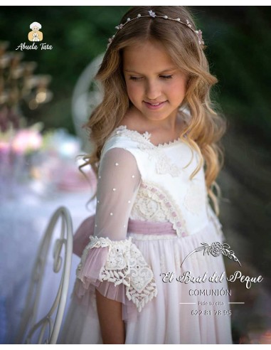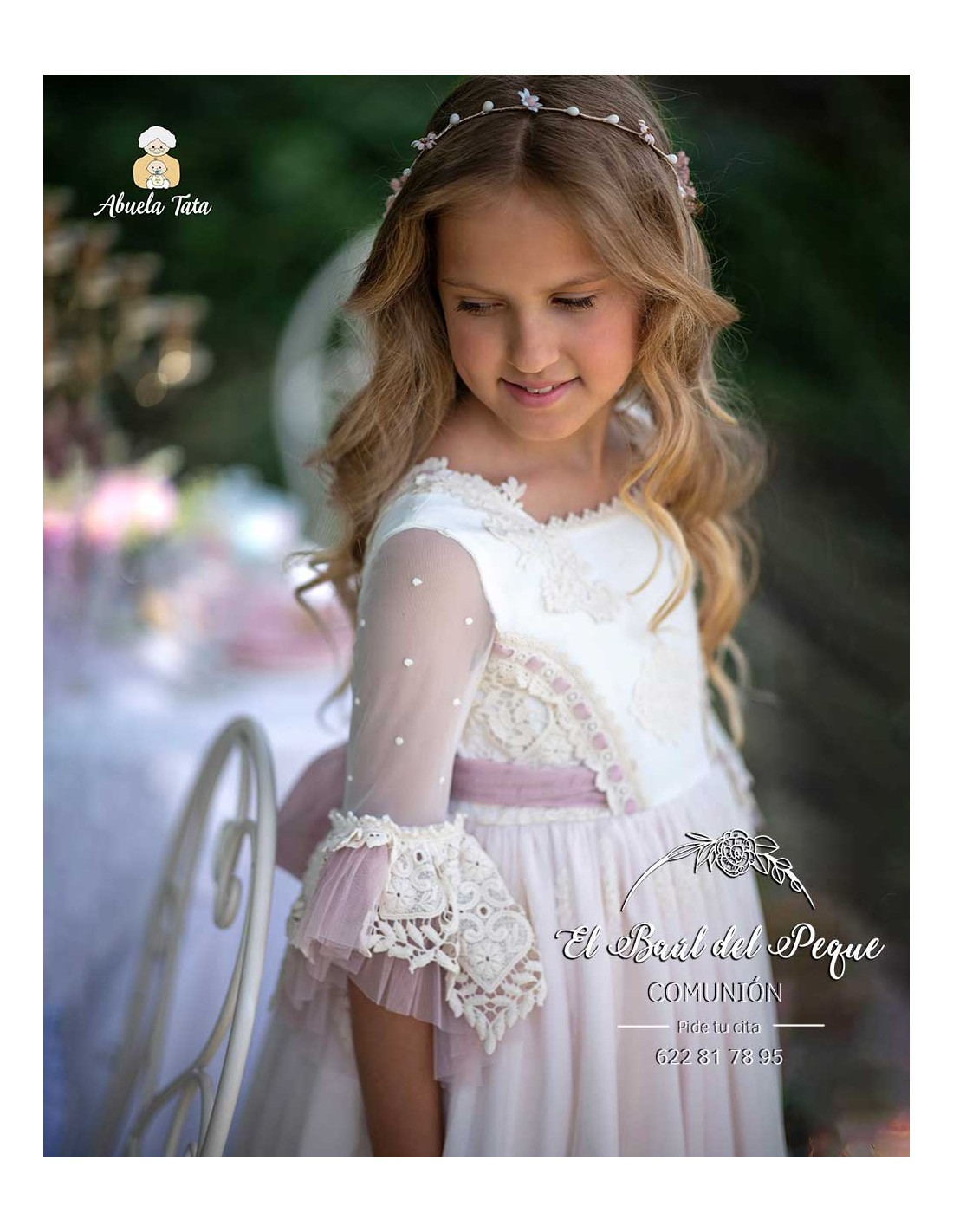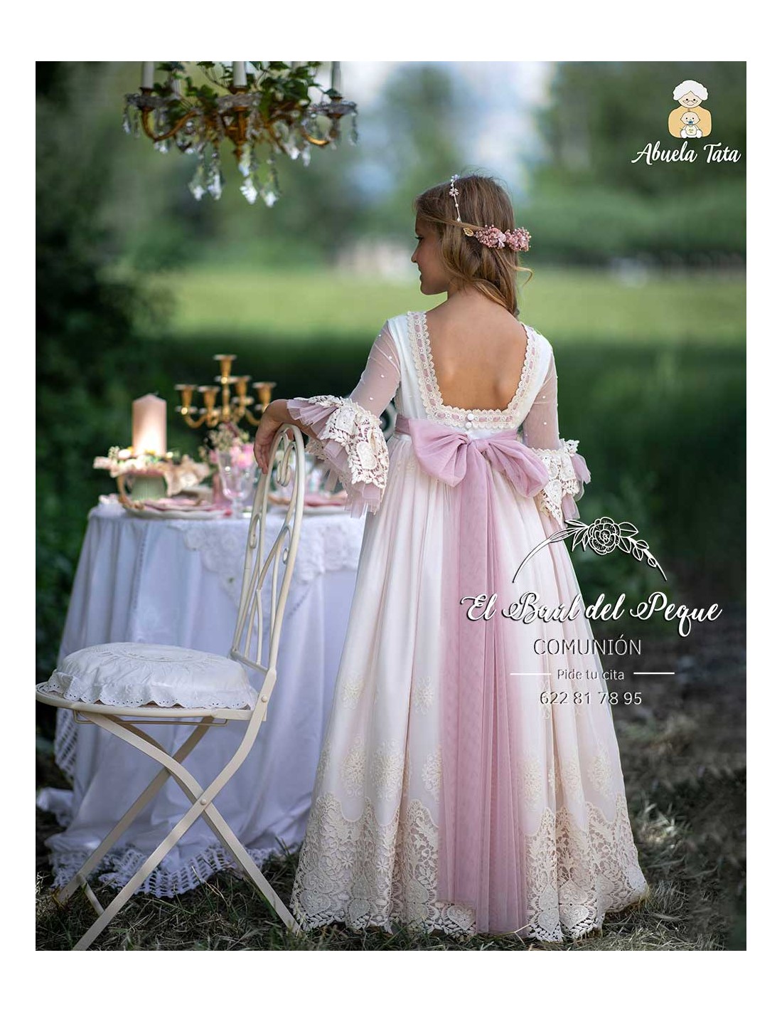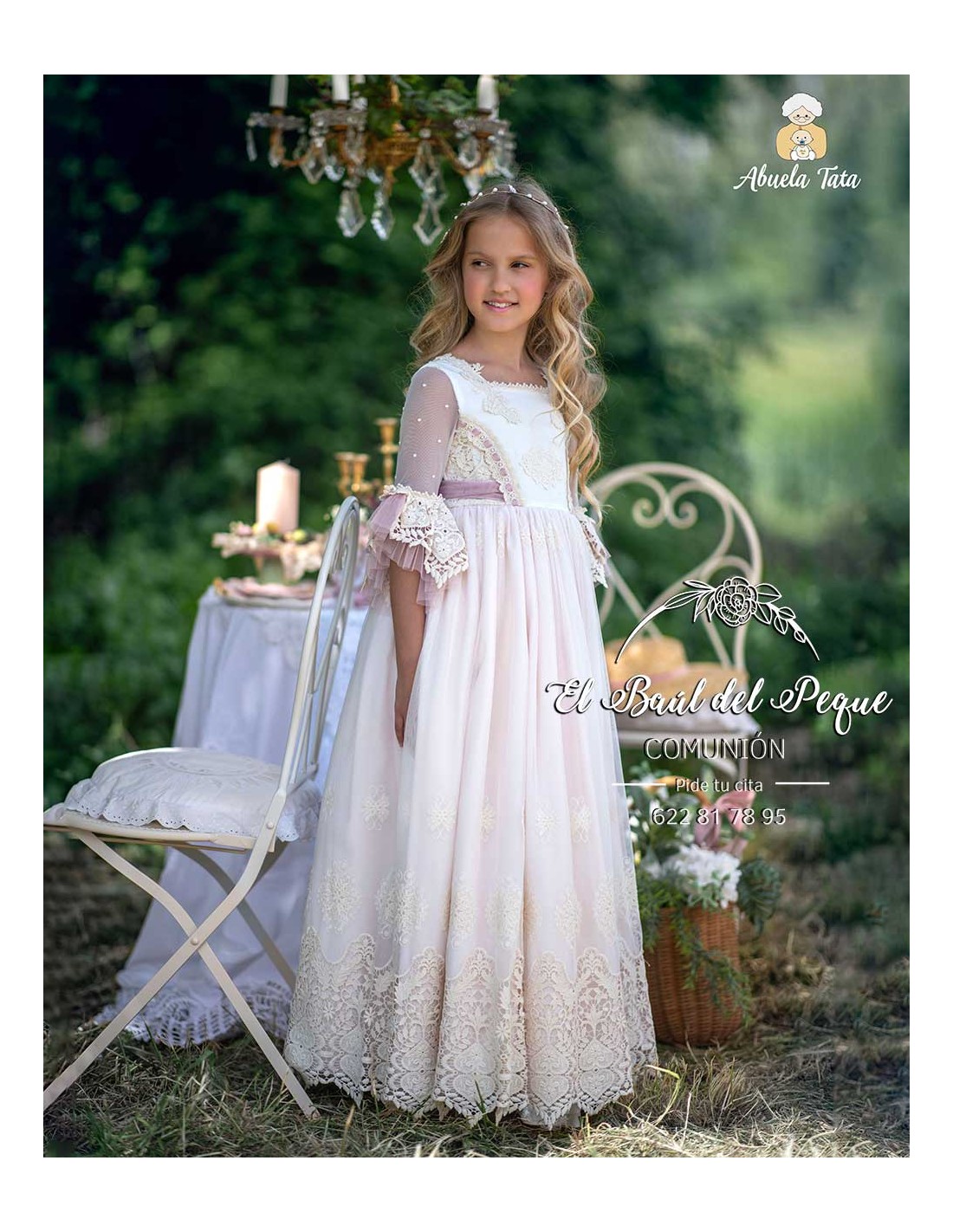 Colección Niña de Comunión 2026 Abuela Tata Modelo Ariadna Rosa Maquillaje con Tul Bordado