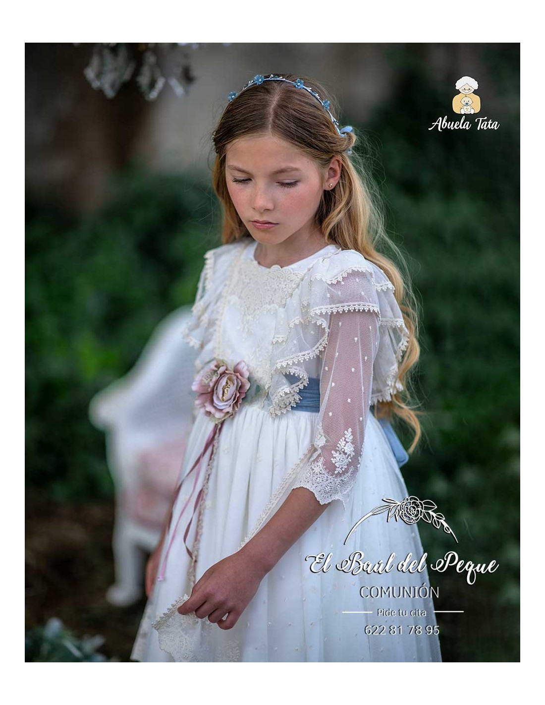 Colección Niña de Comunión 2026 Abuela Tata Modelo Ariadna Rosa Maquillaje con Tul Bordado