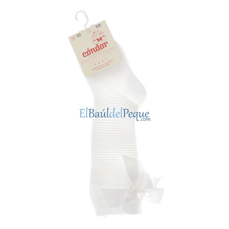 CONDOR Calcetín Blanco Alto Punto Bobo con Lazo detrás