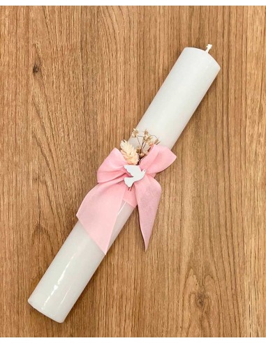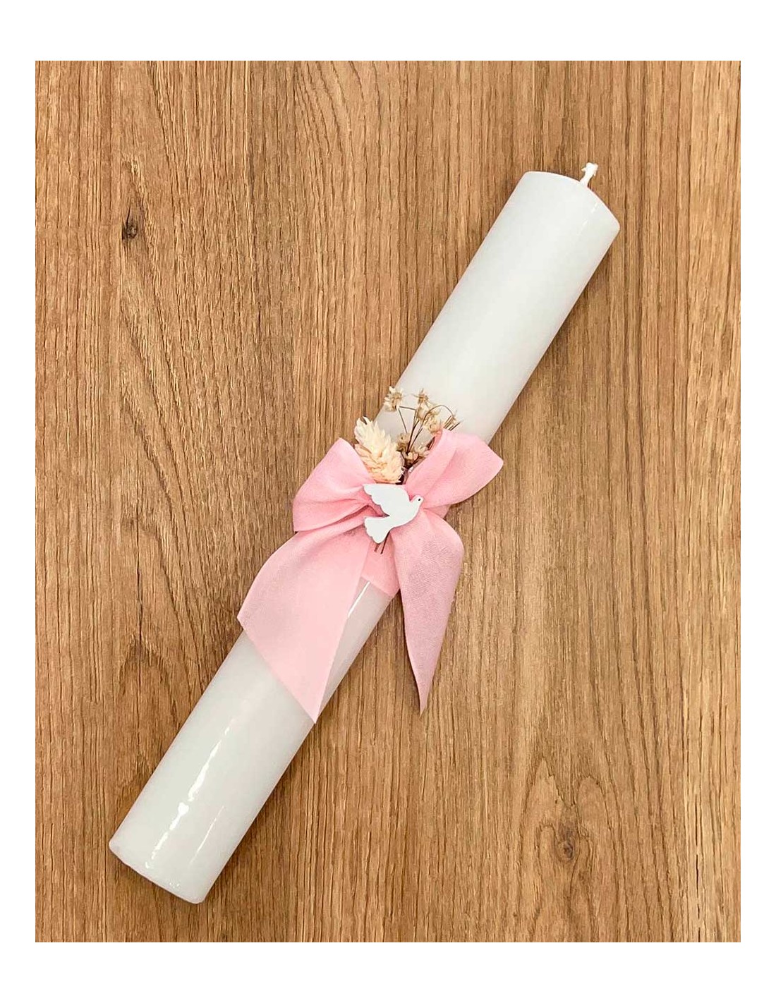 Vela Cristianar para Bautizo Bebé Lazo Rosa con Flores y Paloma