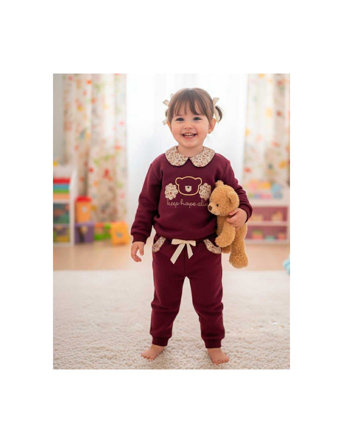 Conjunto Niña Bebé Sudadera Cuello y Pantalón Burdeos