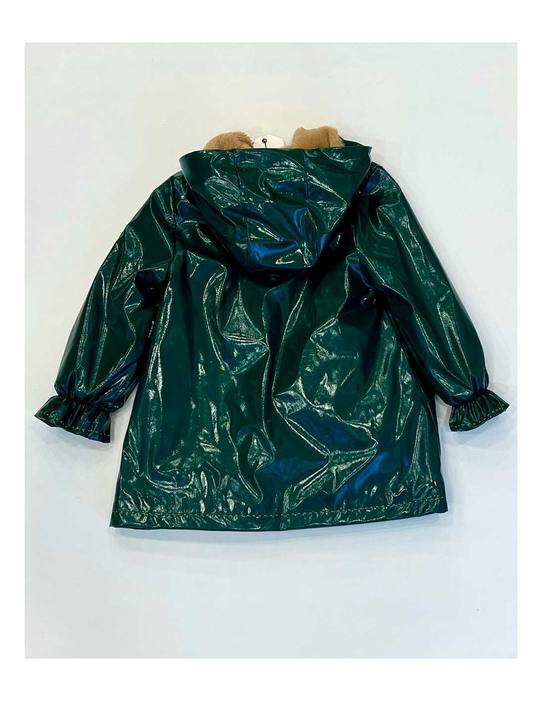 Abrigo Charol Niña Evasé Bolsillos Rosa Palo y Capucha Pelo de La Martinica by María Sobrino Otoño-Invierno 2025/2026