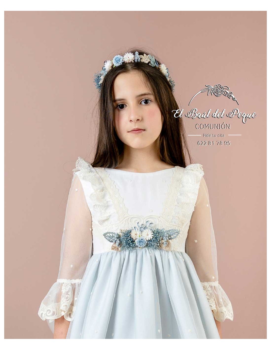Vestido Comunión Niña Modelo 40114 Lilus Comuniones 2026 Crudo Fondo Océano