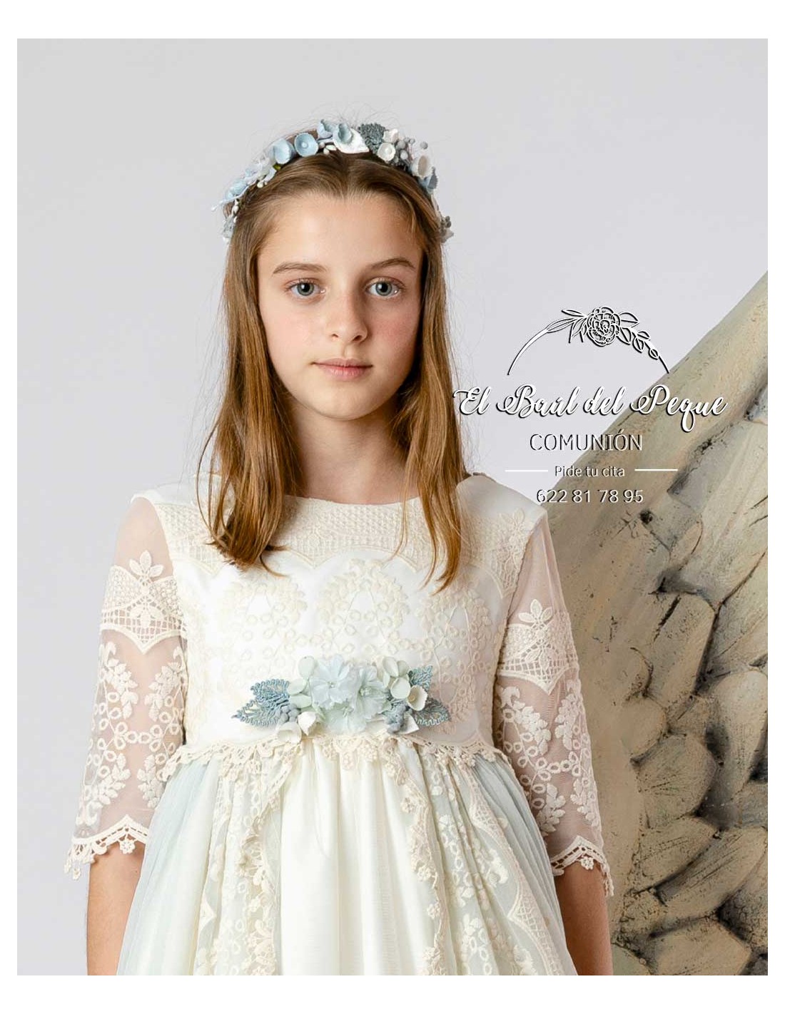 Vestido Comunión Niña Modelo 40114 Lilus Comuniones 2026 Crudo Fondo Océano