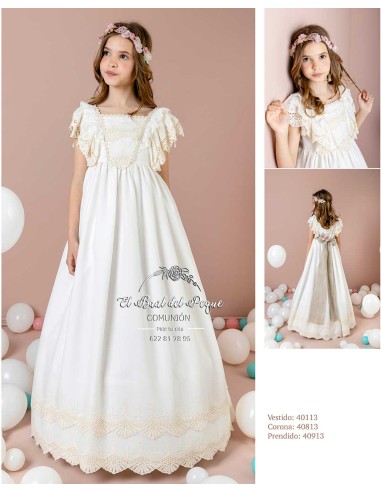 Vestido Comunión Lilus 2026 Modelo 40113 Crudo Lazo Lino