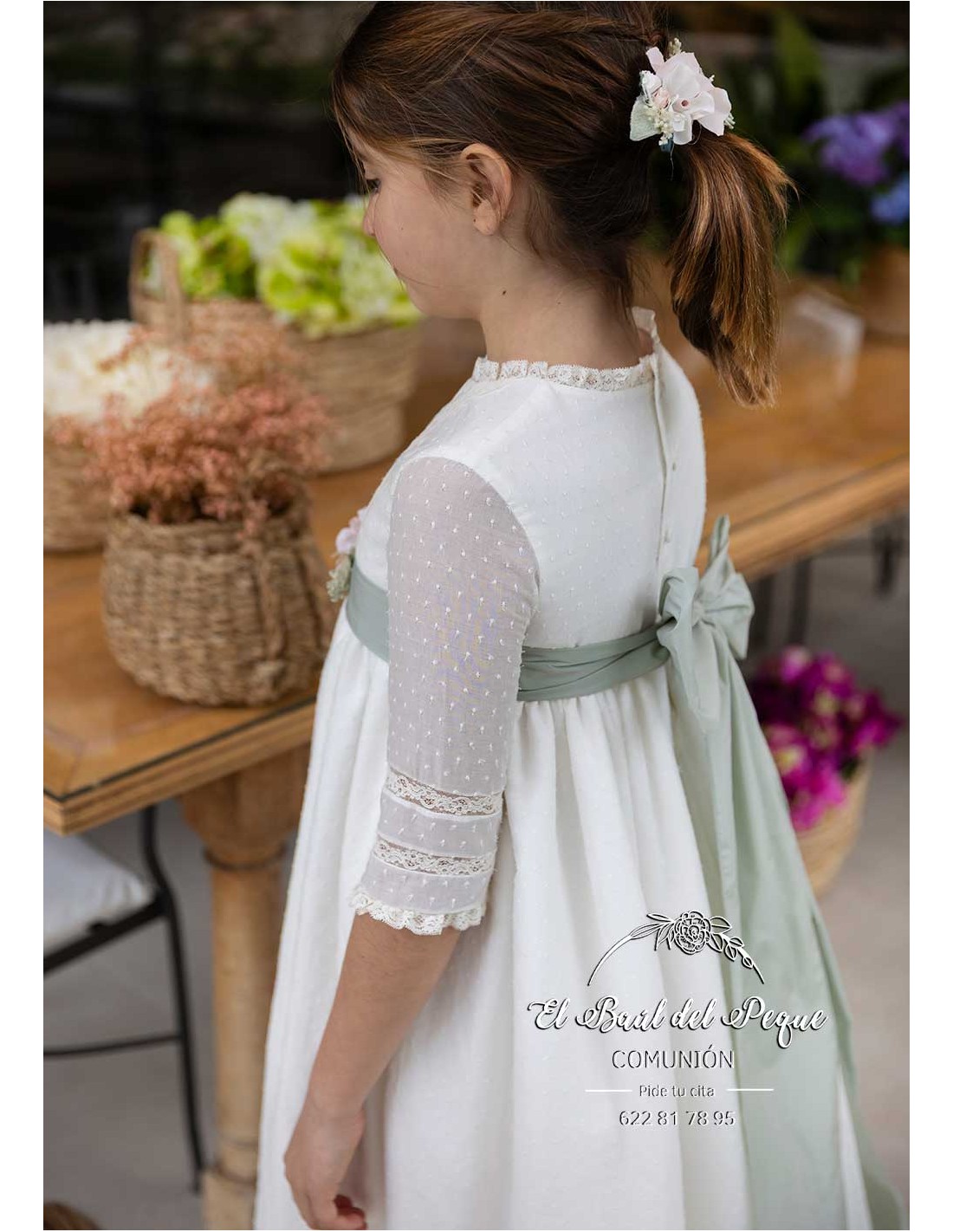 Vestido Comunión Niña Modelo 406 Teté y Martina Comuniones 2026 Lino y Valencié, Manga Campana, Falda Volante