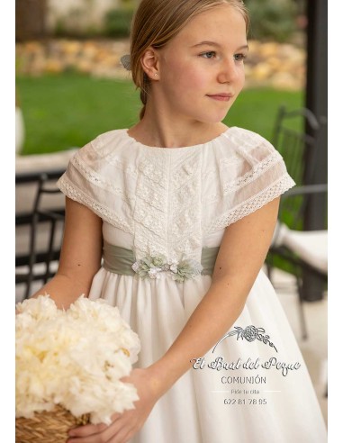 Vestido Comunión Niña Modelo 406 Teté y Martina Comuniones 2026 Lino y Valencié, Manga Campana, Falda Volante