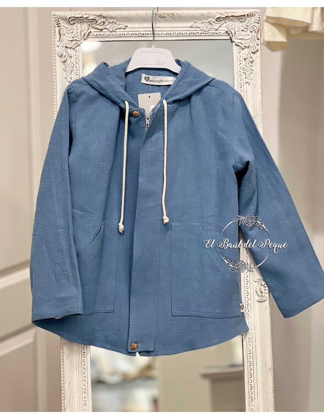 Casaca Capucha Lino Niño Azul Manuela Montero