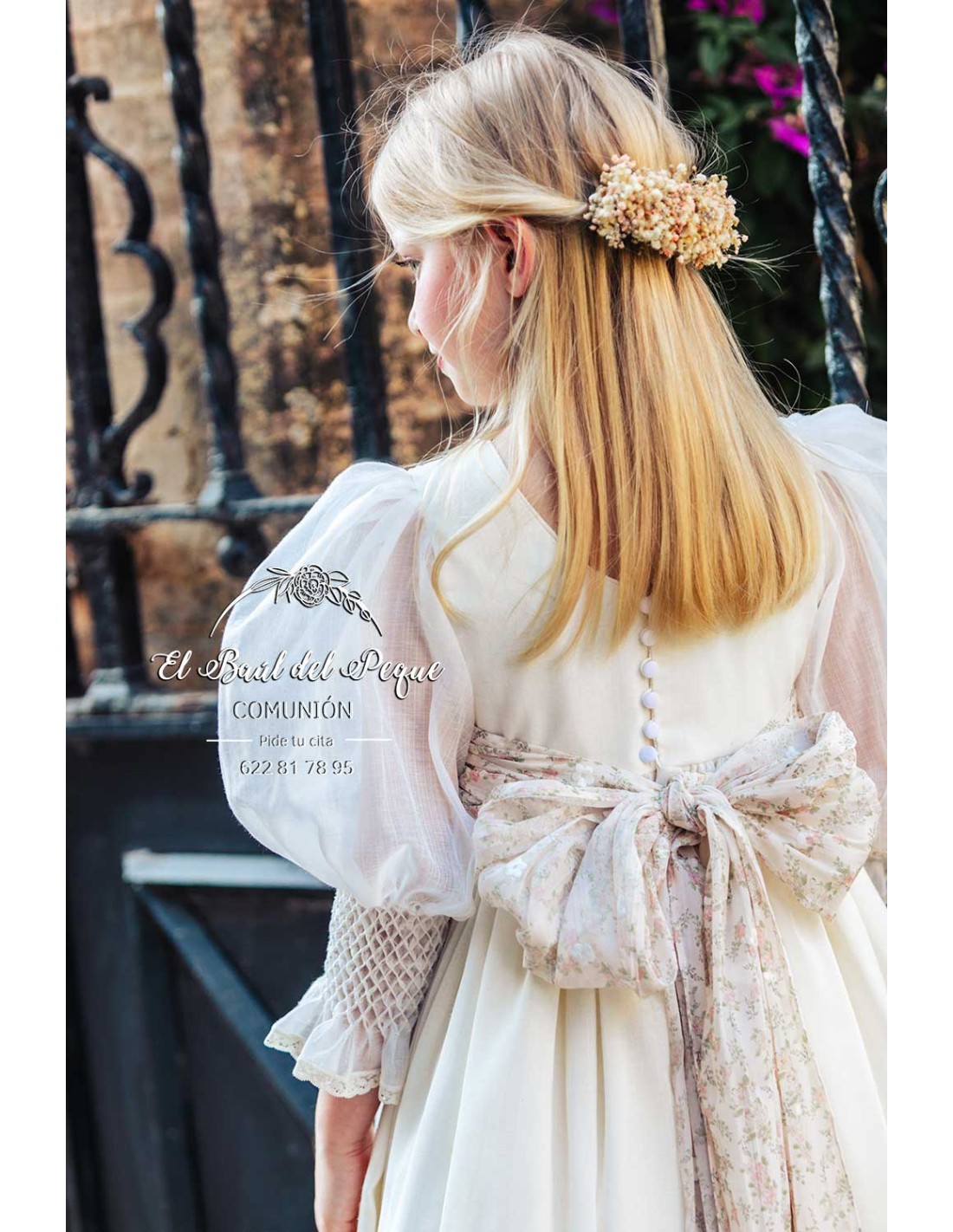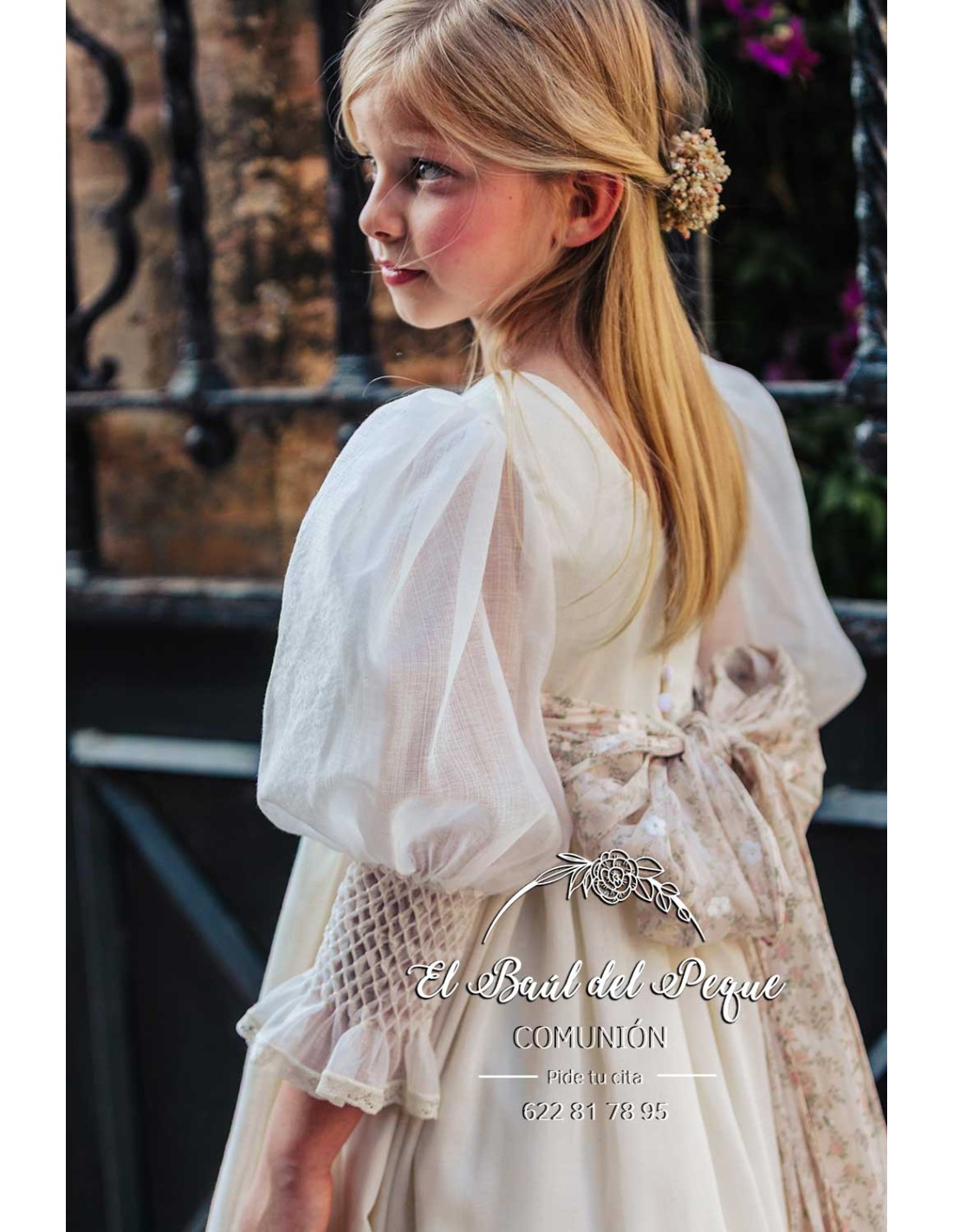<h3>Colección Comunión 2026 Manuela Montero Comuniones Modelo Marina Fajín Estampado Rosa Manga Francesa</h3>