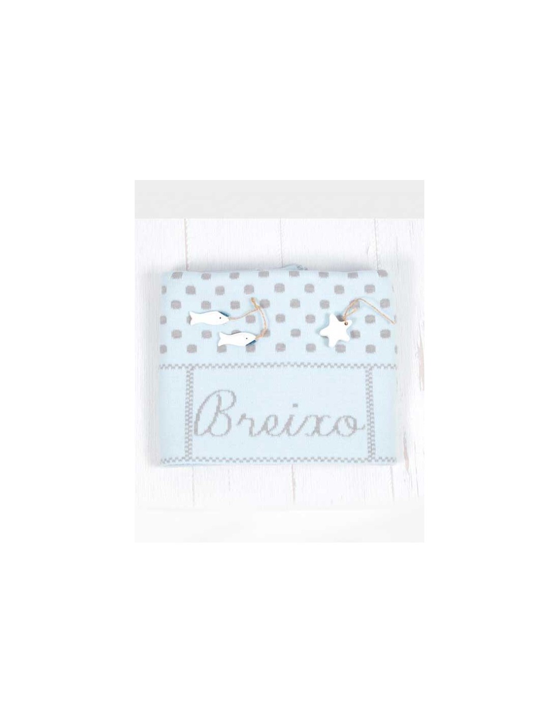 Mantita Chal Bebé Personalizada en el texto, Celeste Bebé y Topos Grises Pangasa