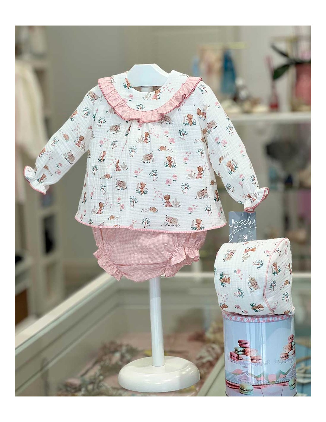 Jesusito, Braguita y Capota Estampado Muselina Rosa Empolvado Yoedu Moda Infantil Otoño-Invierno 2025-2026