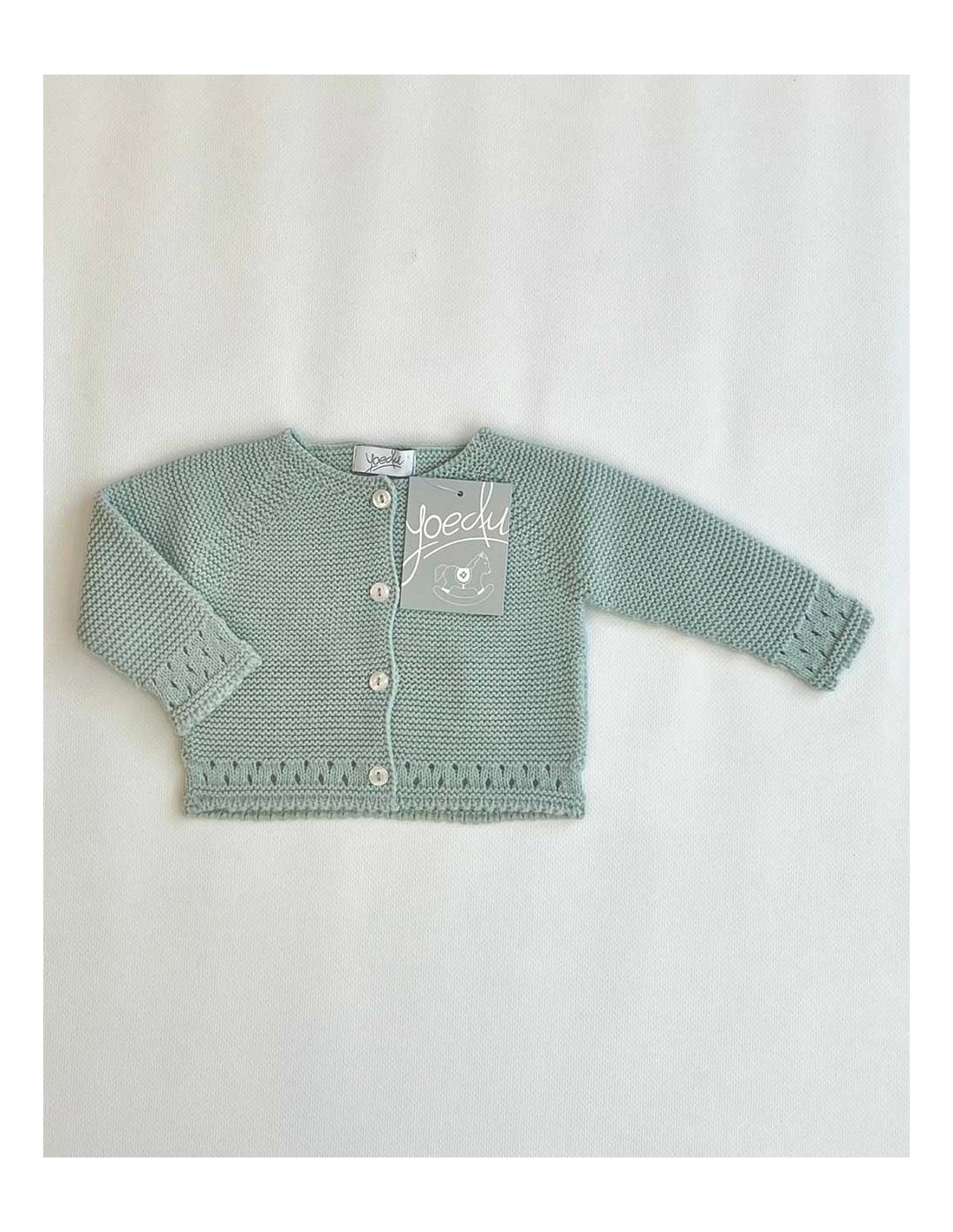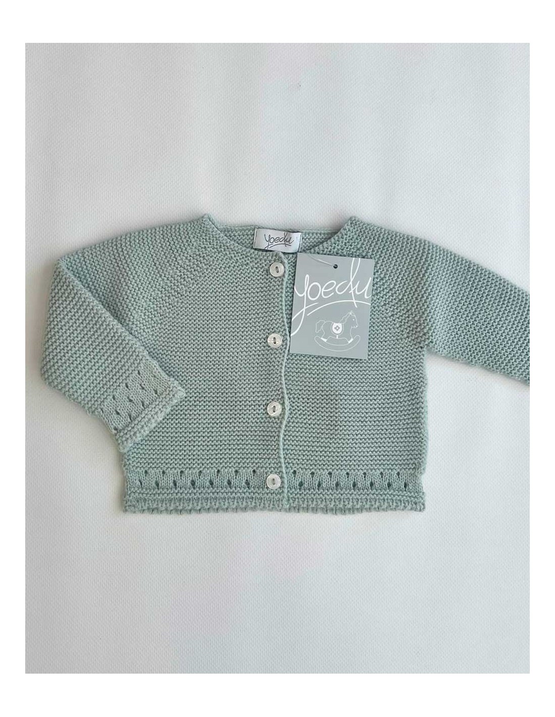 <p>Confeccionada en <strong>punto bobo suave</strong> en color verde seda, presenta un diseño cuidado y cierre con botones nacarados.</p>