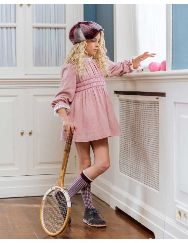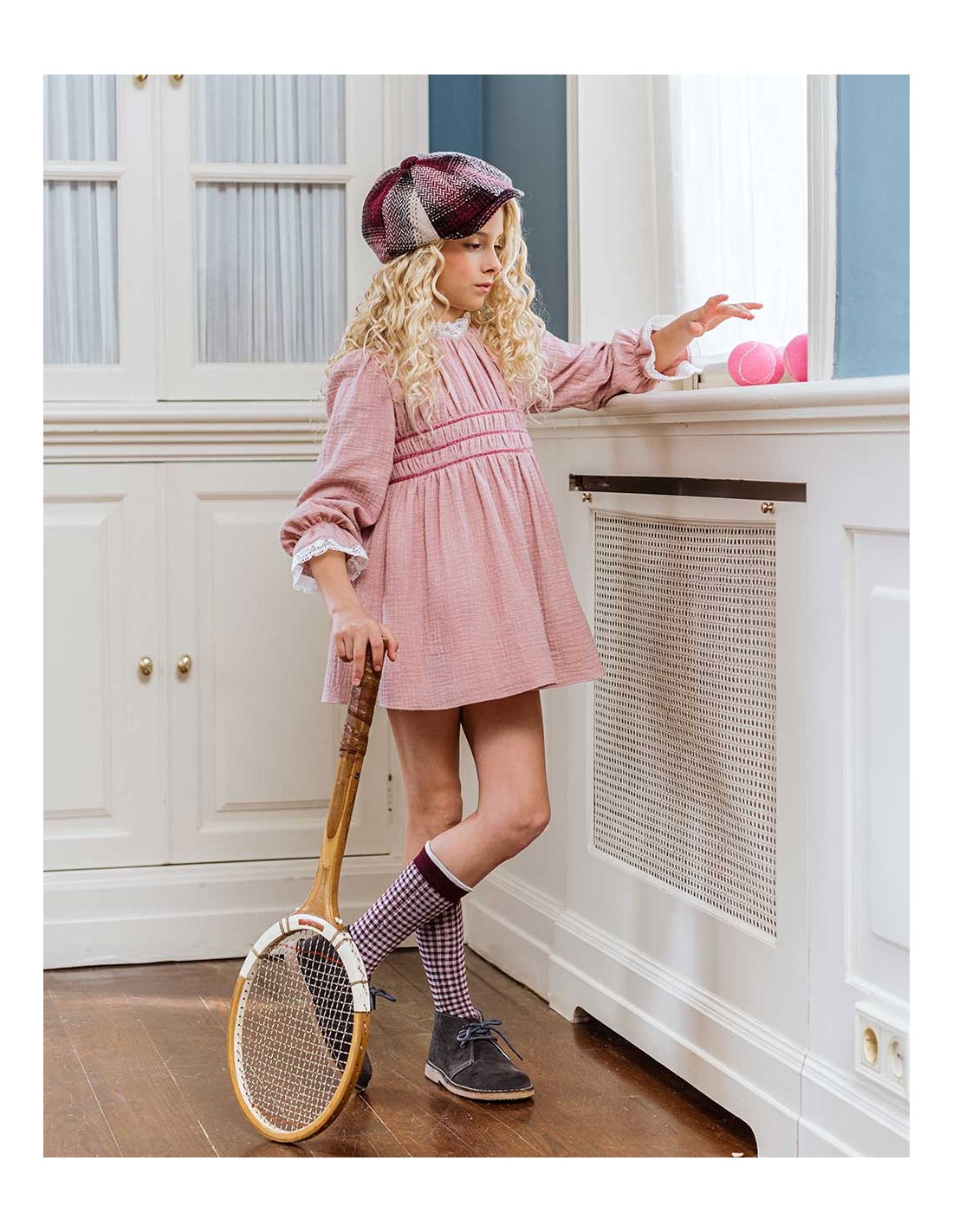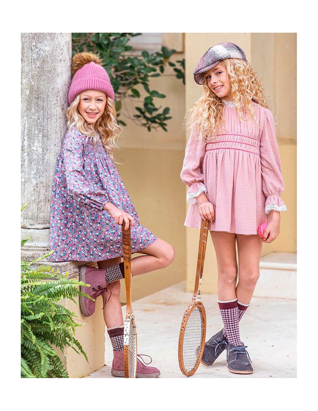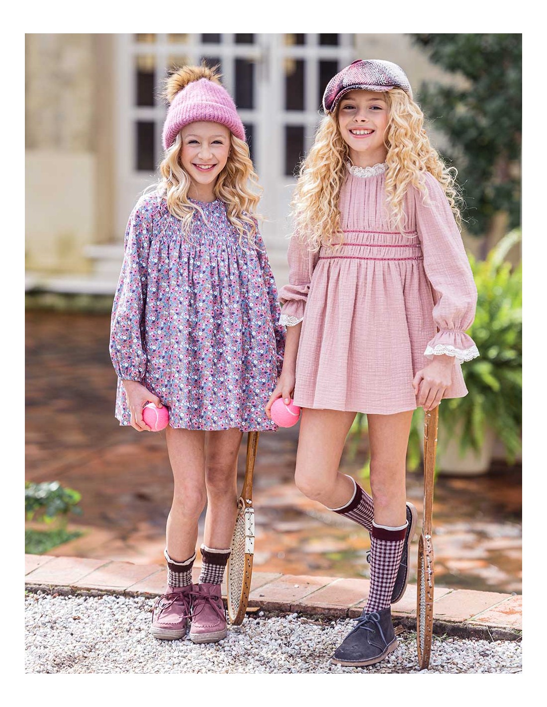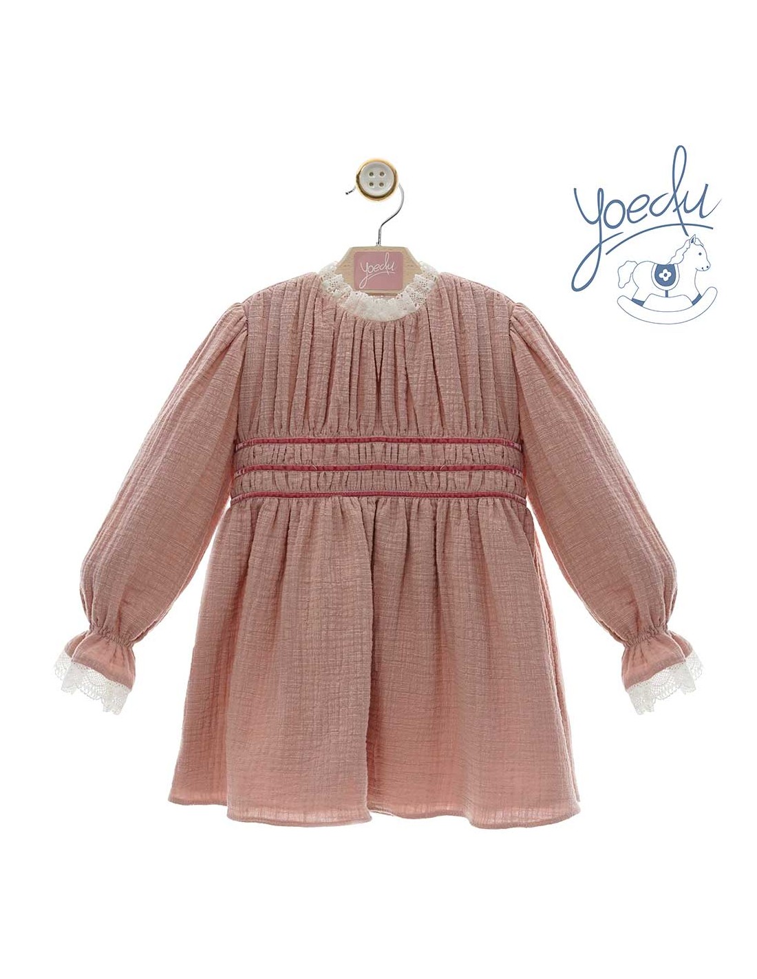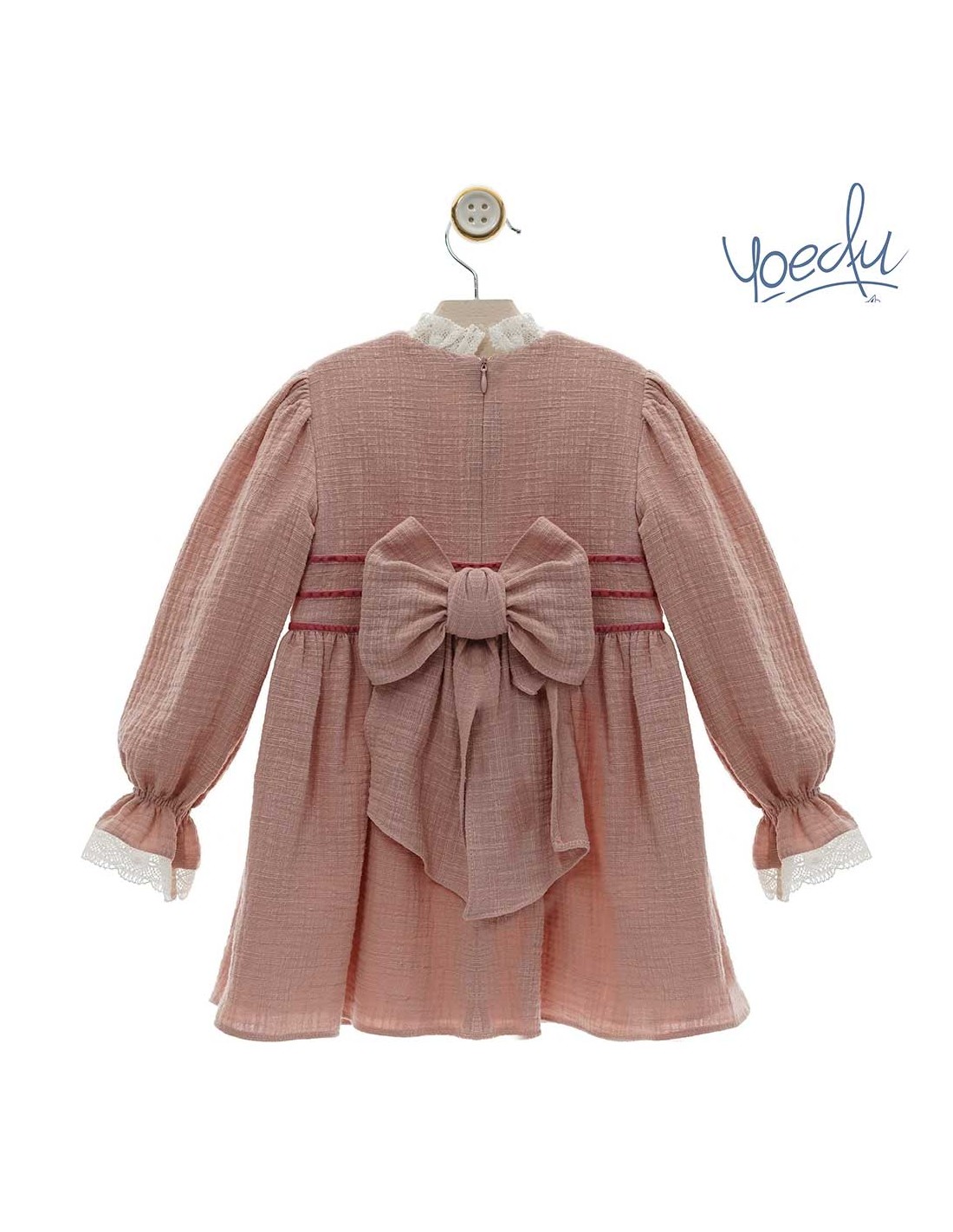 Vestido Niña Familia Damasco Rosa Piedra de Sol Yoedu Moda Infantil Otoño-Invierno 2025-2026